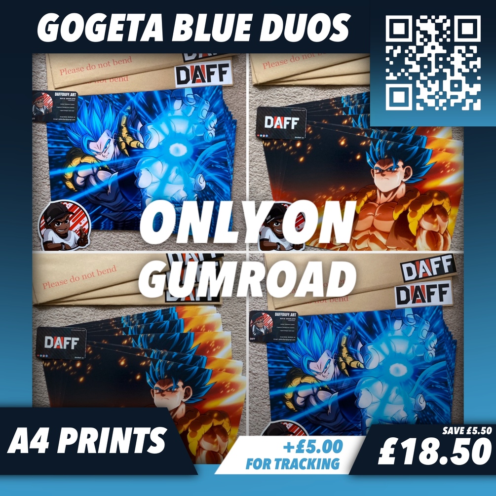 Truly magnificent 8x12” inch HD✨ prints of the Gogeta drawing printed on Fujifilm Crystal Archive paper to light up your walls 🔥🔥🔥 they’re limited in number so when they’re gone, they’re gone 🙏🏾